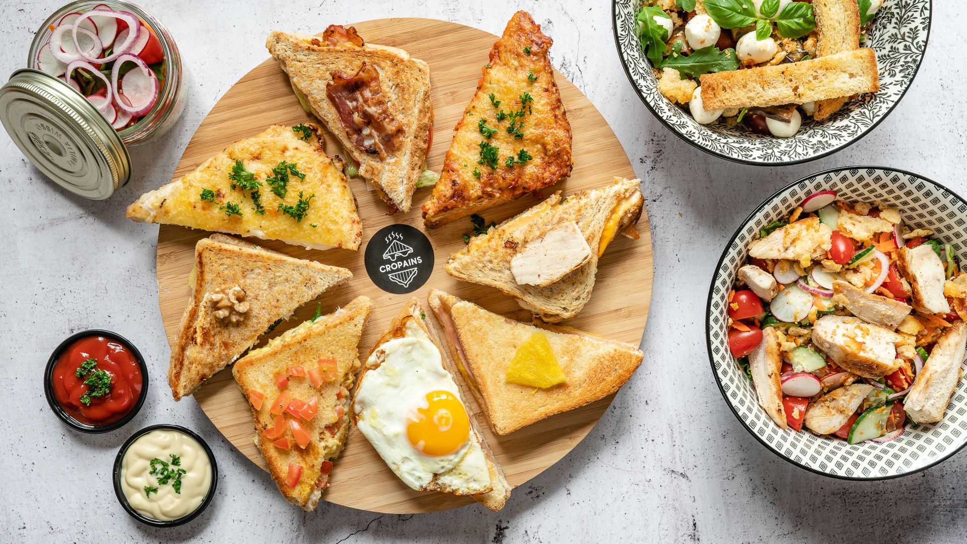 Dubbele croque met vegan gehakt, violife cheddar, paprika, rode ui€17.90SIR -enkel-