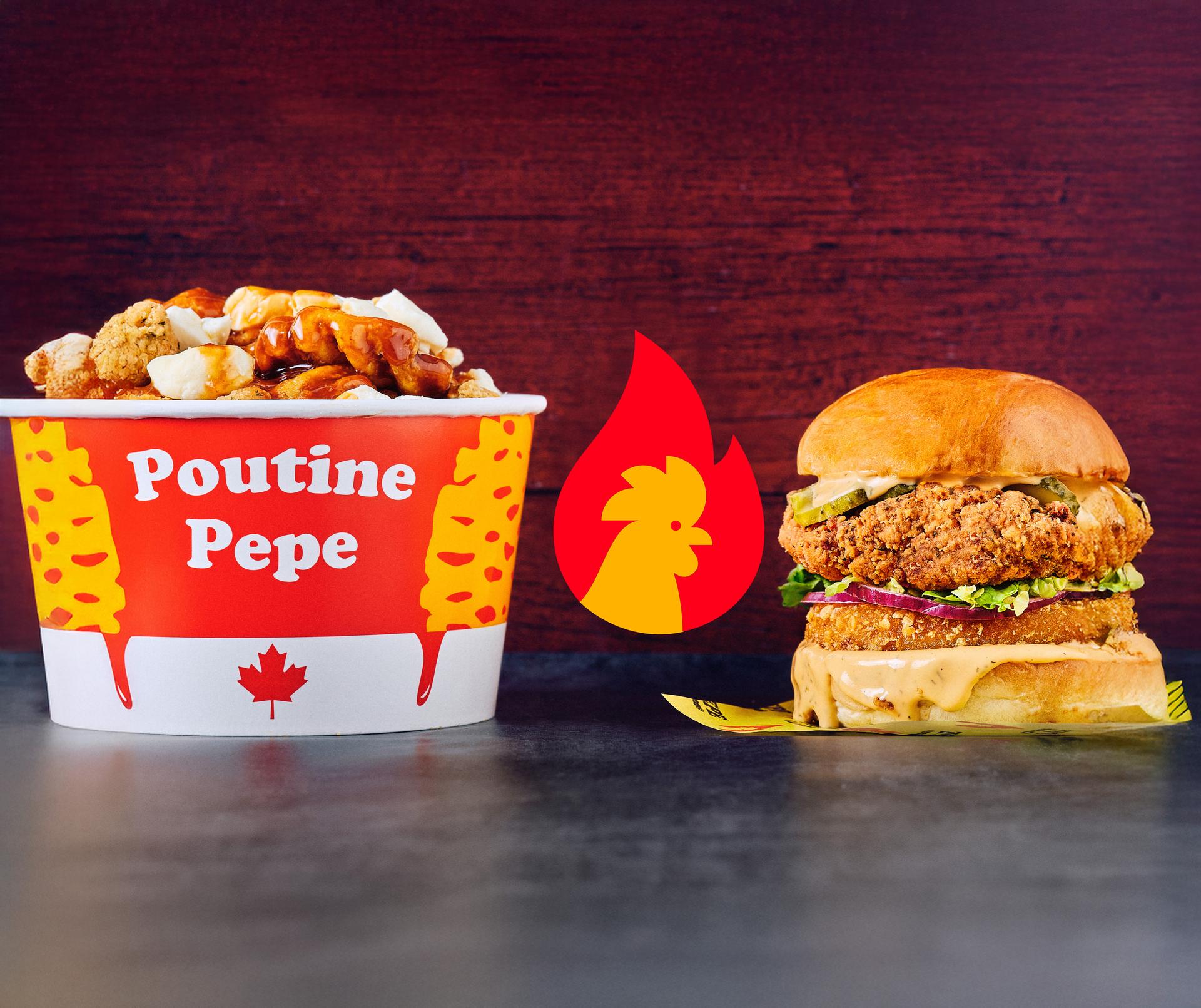 C'est la flamme ultime du Pepe ! Spicy burger de poulet frit croustillant, servi avec du coleslaw frais, des cornichons et une sauce secrète qui déchire€12.90Pepe Poutine 🇨🇦