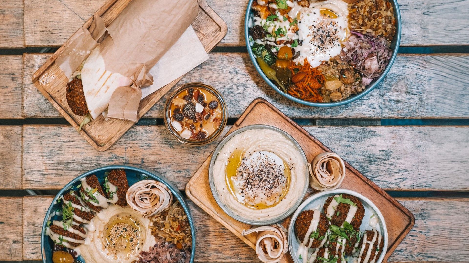 Chickpea balls with fresh herbs and spices€9.00VeganCauliflower shawarma flatbread