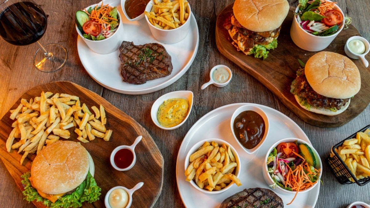 (Gemalen rundvlees, gebakken ui, cheddar, ketchup en slaatjes)20,00 €Bacon Burger