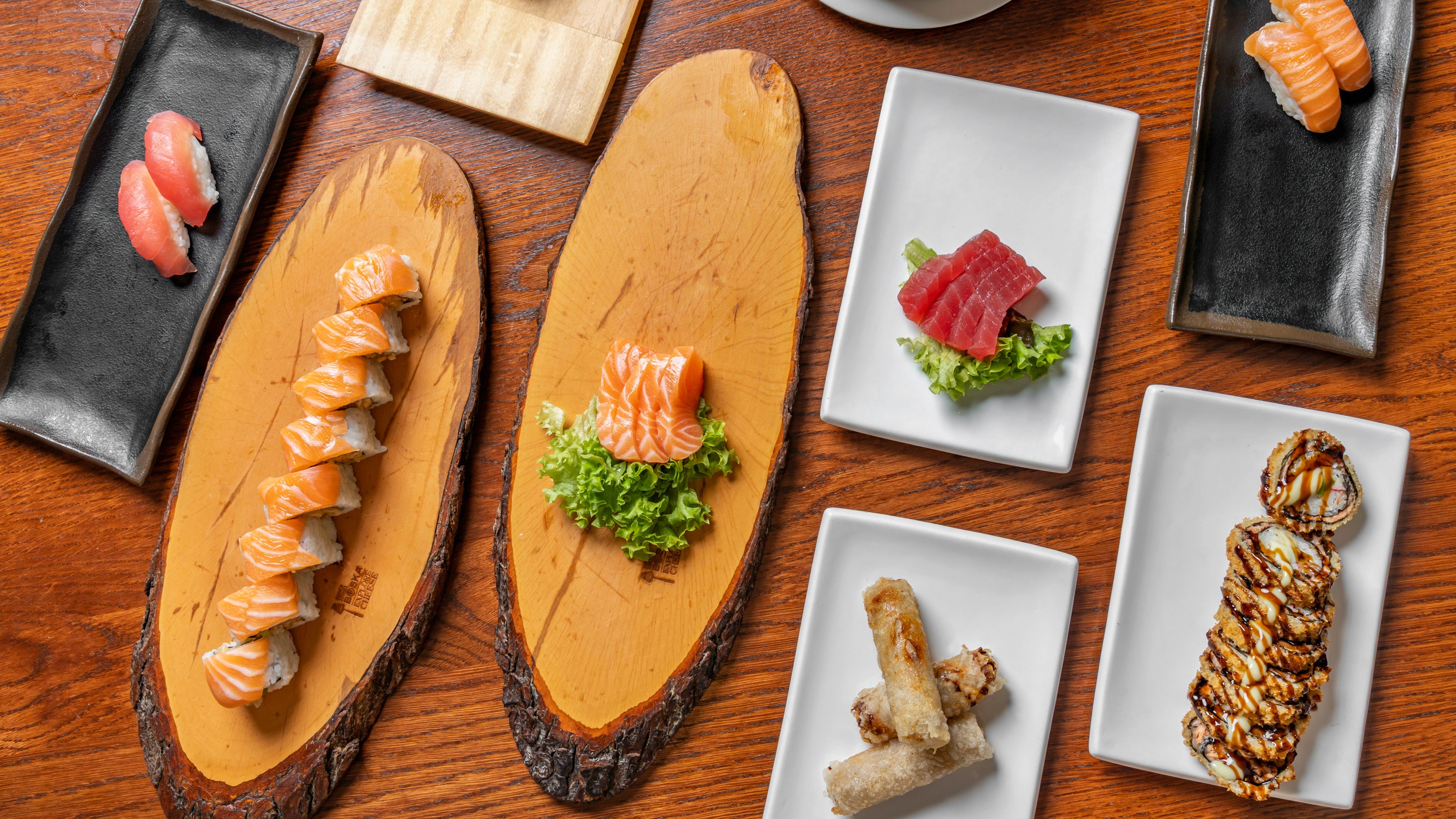 12 sashimi, 10 nigiri, 16 dragon eyes, 16 Chef's special, 8 maki, 12 tempura futo, 8 gebakken rolls, 16 special rolls.110,00 €