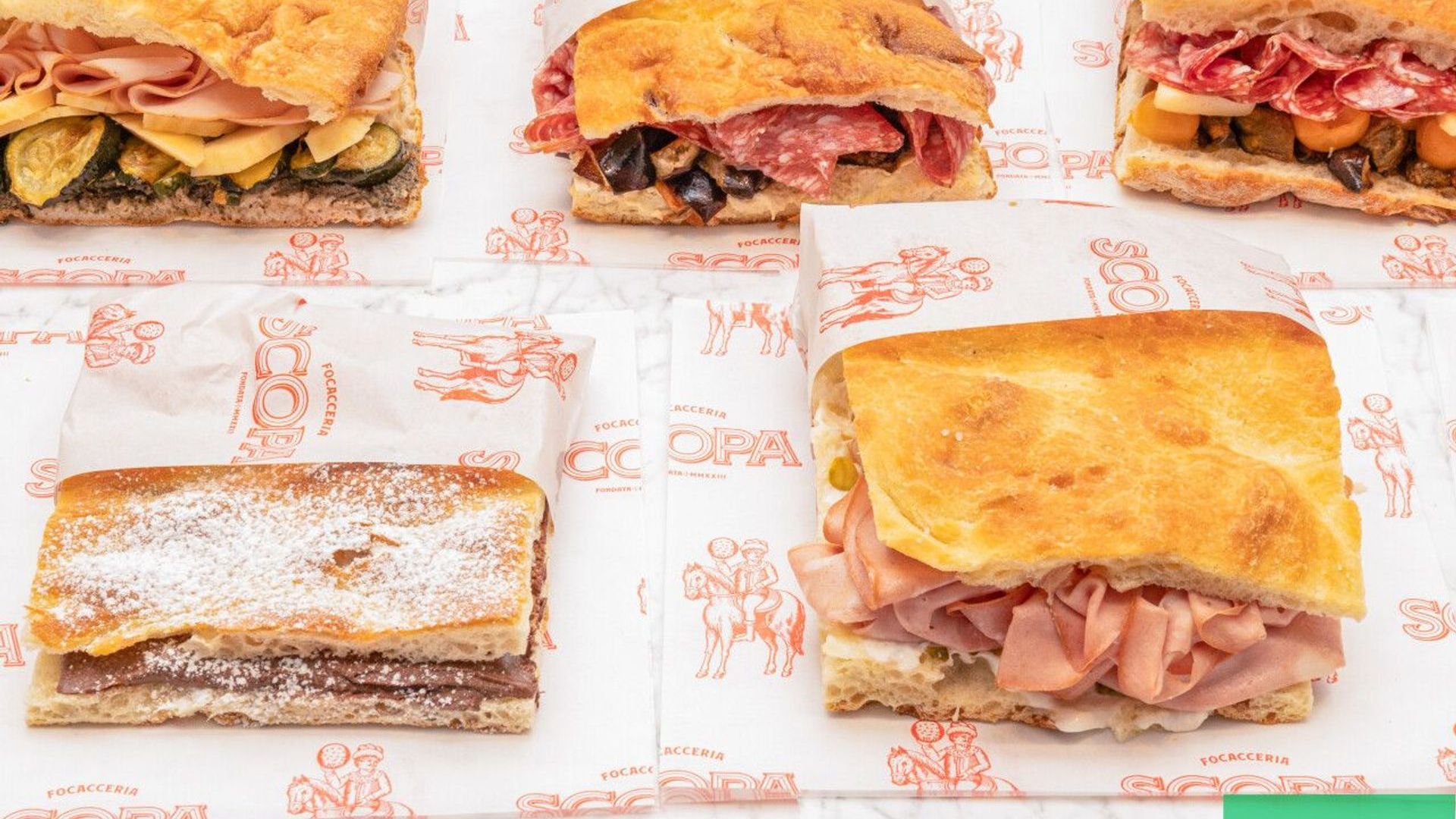 Ham, Spicy Salami, Tomatoes, Rocket€12,50Focaccia du mois